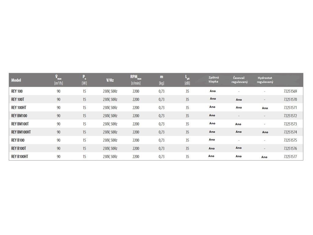 Pouzdro ventilátoru je z ABS plastu odolného proti nárazu a UV záření, a všechny modely jsou vybaveny zpětnou klapkou, která zabraňuje návratu vzduchu z ventilačního potrubí do místnosti.