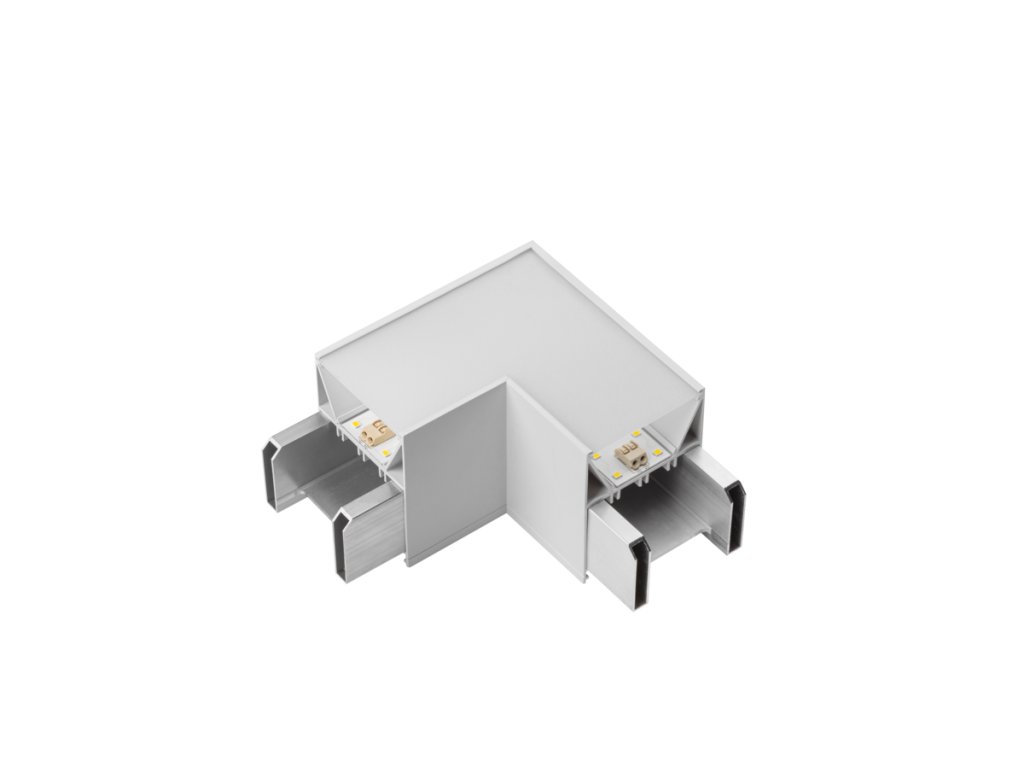 L-konektor VINEA slouží k propojení liniových LED svítidel systému VINEA v pravém úhlu (90°). Umožňuje vytvoření elegantních rohových sestav a plynulé návaznosti světelné linie bez narušení designu.