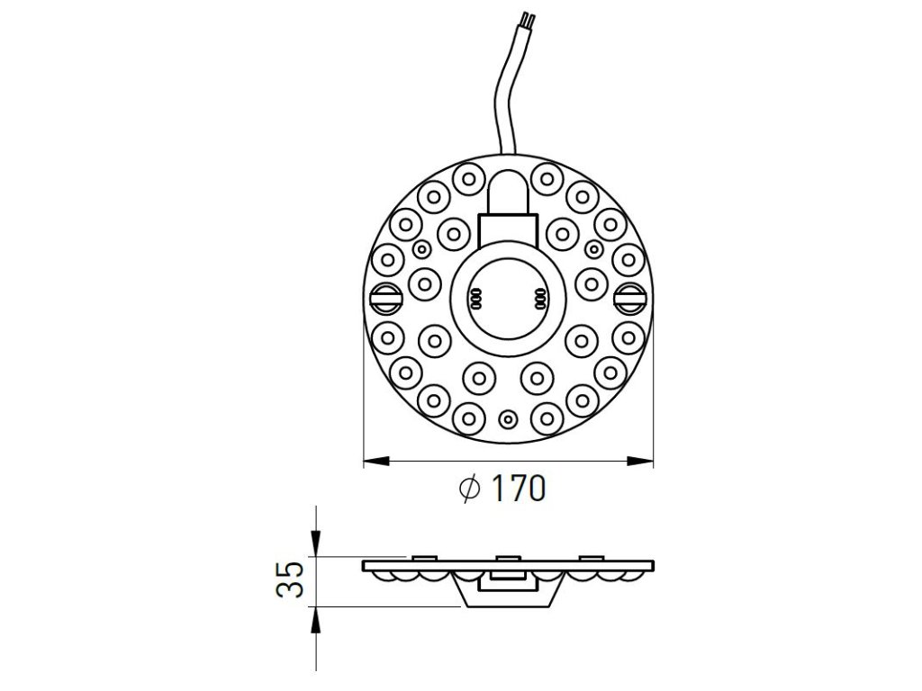 Montáž je velmi snadná – modul se přichytí ke kovové základně svítidla pomocí tří magnetických patek (rozteč 80 mm) a připojí přímo na 230 V. Integrovaný napáječ znamená žádný externí driver.