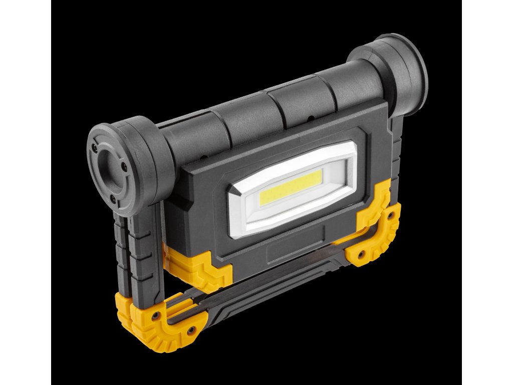 Ergonomická, nastavitelná rukojeť umožňuje nejen snadné přenášení, ale také slouží jako stabilní stojan, což vám poskytne ještě více možností při používání. Přepínač s třístupňovým operačním systémem vám umožňuje aktivovat oba světelné moduly současně, nebo jednotlivě pouze horní či spodní modul, čímž zvyšuje variabilitu osvětlení.