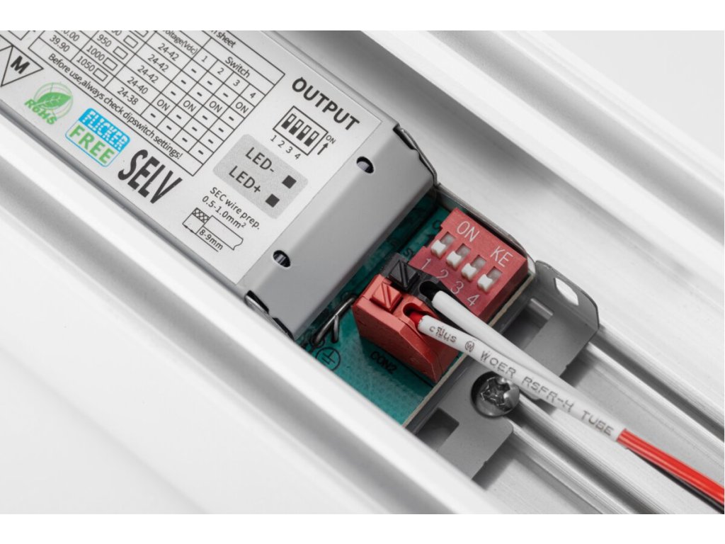 Velkou výhodou je nastavitelný výkon 30–40 W, díky kterému lze přizpůsobit intenzitu osvětlení konkrétním potřebám prostoru a optimalizovat spotřebu energie.