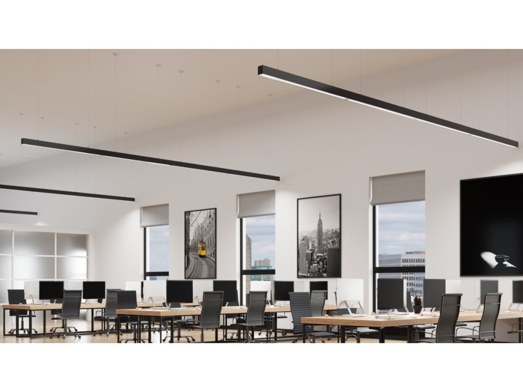 Moderní liniové LED svítidlo VINEA v černé barvě představuje profesionální řešení osvětlení pro kanceláře, chodby, konferenční místnosti i moderní domácí interiéry. Elegantní černé provedení podtrhuje minimalistický design a hodí se zejména do moderních, industriálních nebo kontrastních interiérů.