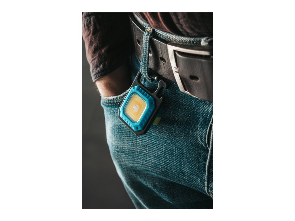 Svítilna je vybavena silným magnetem pro snadné uchycení na kovové povrchy, což umožní mít při práci volné ruce. Sklopný stojan zajišťuje flexibilní umístění téměř kdekoli. Praktická karabinka umožňuje připevnění na klíče, batoh či oděv – skvělé jako přívěsek i bezpečnostní světlo. Součástí je také integrovaný otvírák na lahve.