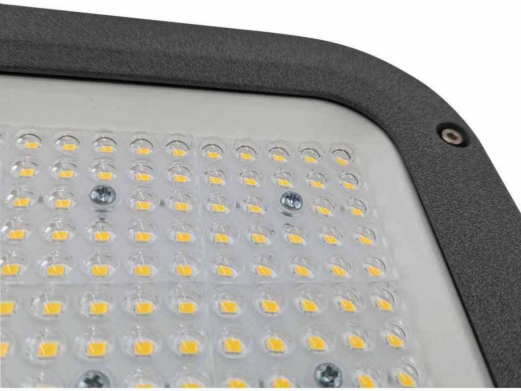 Těleso svítidla tvoří odolný šedě lakovaný hliníkový odlitek, difuzor tepelně a UV odolné tvrzené sklo.