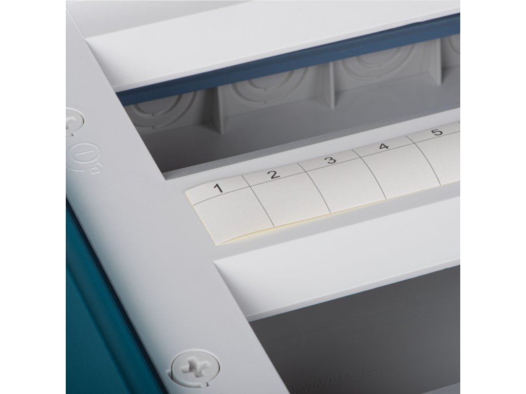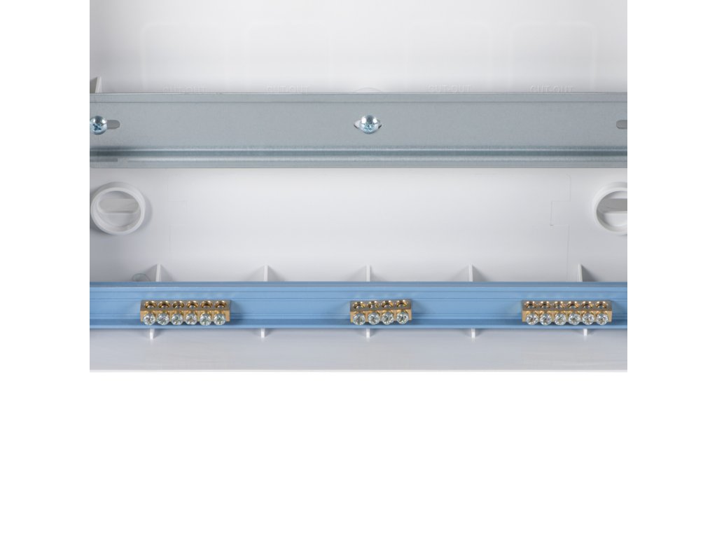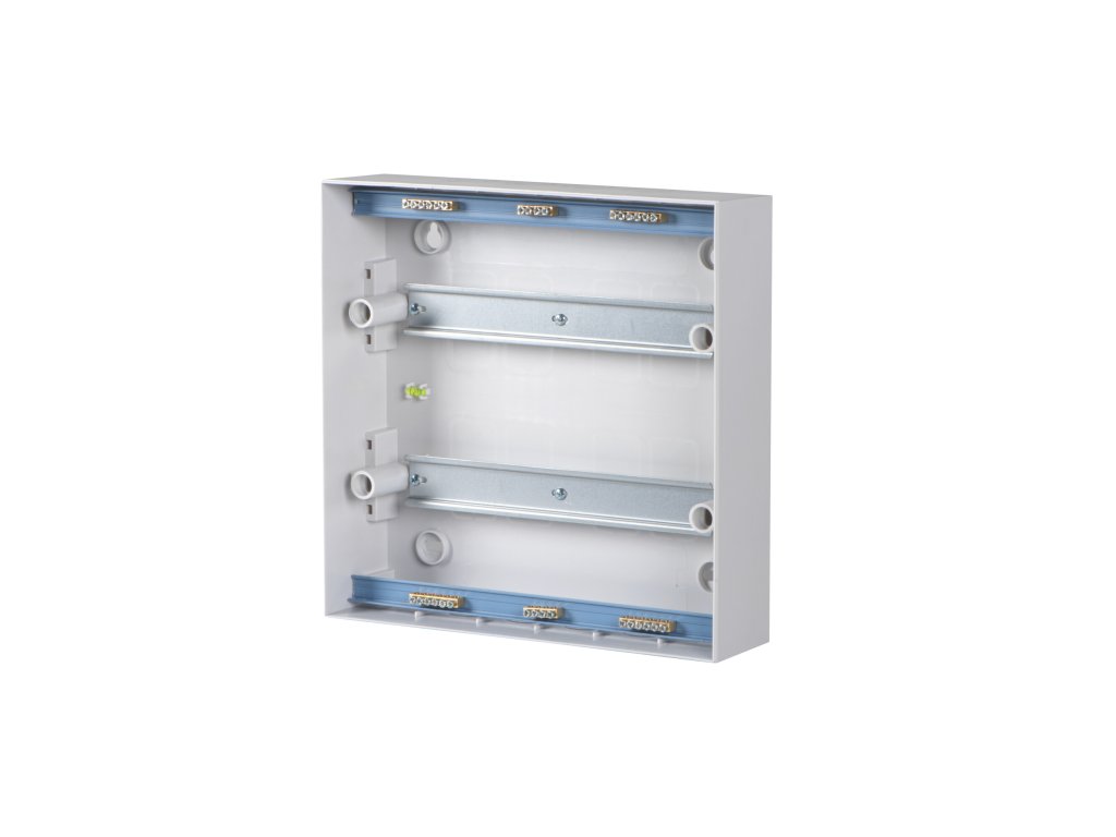 Plastová rozvaděčová skříň s DIN lištou, 1x18P-osmnásti pólový, montáž pod omítku S DVÍŘKY otevíranéma nahoru, s nulovým můstkem.