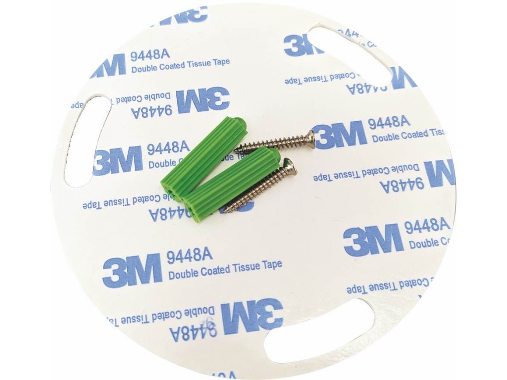 Montáž pomocí vrutů a hmoždinek nebo nalepením prostřednictvím 3M pásky.